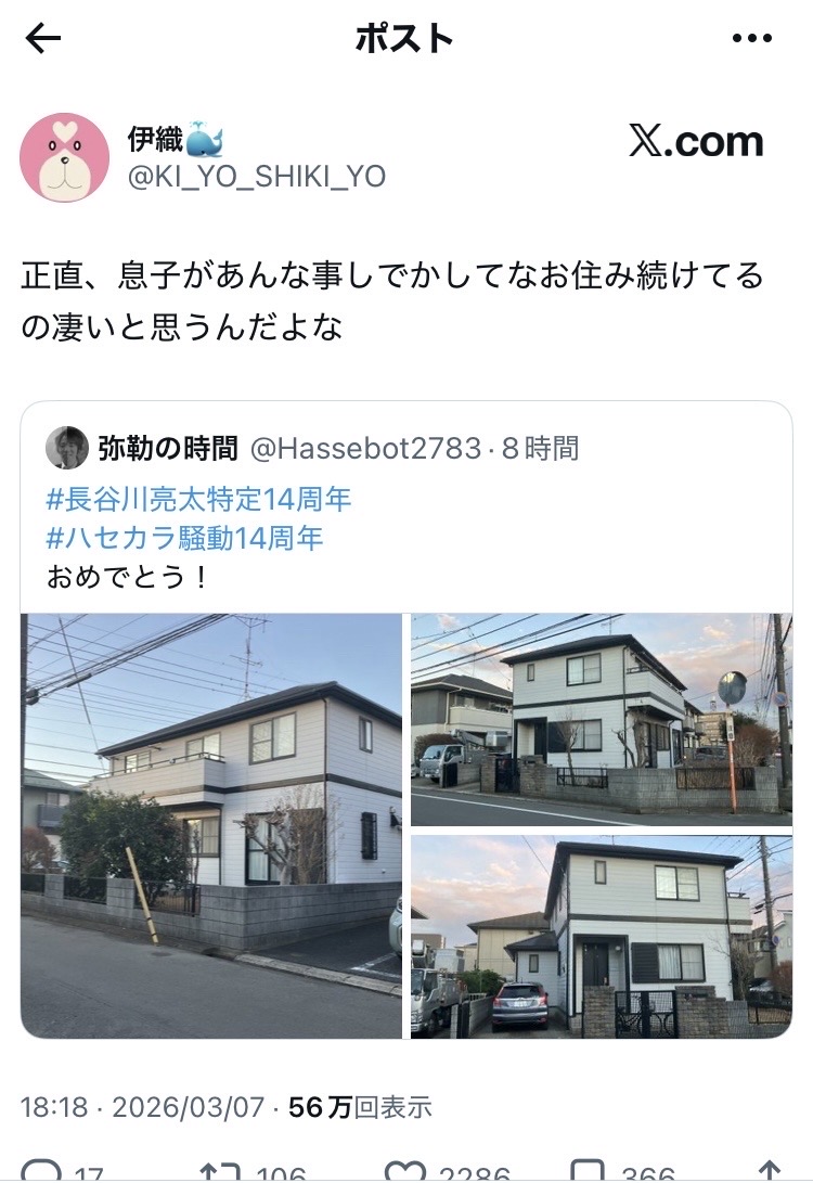 | … | 126/03/08(日)06:21:36No.1408723862そうだねx307しでかしたという意味では一般人の家を晒して押しかけるやつの方がよっぽどだと思うが… |