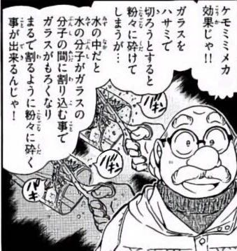 | … | 1226/03/08(日)12:30:55No.1408793537+「ケモミミメカ効果」という特定の用語は一般的に認知されていませんが、文脈から判断して、『名探偵コナン』で話題になった「ケモメカニカル効果」、または「ケモミミ(獣耳)+メカ(機械)」の二次創作要素のどちらかを指している可能性が高いです。 以下にそれぞれについて解説します 1. ケモメカニカル効果 (Chemo-mechanical effect) 『名探偵コナン』(コミックス92巻、アニメ862話)に登場し話題となった、水分子を利用して硬いガラスなどを簡単に切断する物理・化学現象のことです。 仕組み: 水分がガラスの割れ目(クラック)に浸透し、化学的な力(ケモ)で分子の結合を断ち切り、同時に機械的な力(メカ)で削り落とす。これにより、ハサミやカッターなどでガラスを自由な形に切ることが可能になる。 作品での描写: 凶器に使われるトリックとして登場し、話題となった。 2. ケモミミ+メカ (獣耳キャラ×機械) 創作の分野で、動物の耳や尻尾を持ったキャラクター(ケモミミ)に、サイボーグやロボットの要素(メカ、機械のパーツ)を組み合わせ 結論: 『名探偵コナン』のトリックに関する話題であれば、それは「ケモメカニカル効果」です。 |