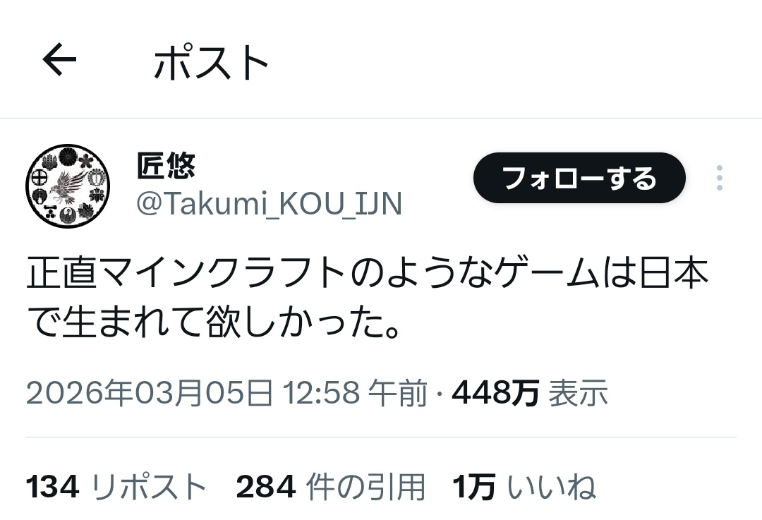 | … | 1726/03/08(日)15:24:32No.1408841692+日本でもマイクラは売れてるしマイクラフォロワーの異世界ファンタジーも1ジャンルになってるのに何かこう何かと言うか |