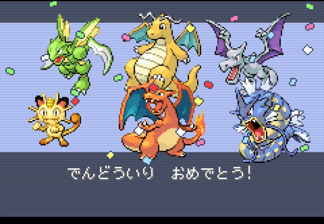 今回はファイアレッドを買って色々考えた末にひこう統一パーティで旅をしてさっき殿堂入りした