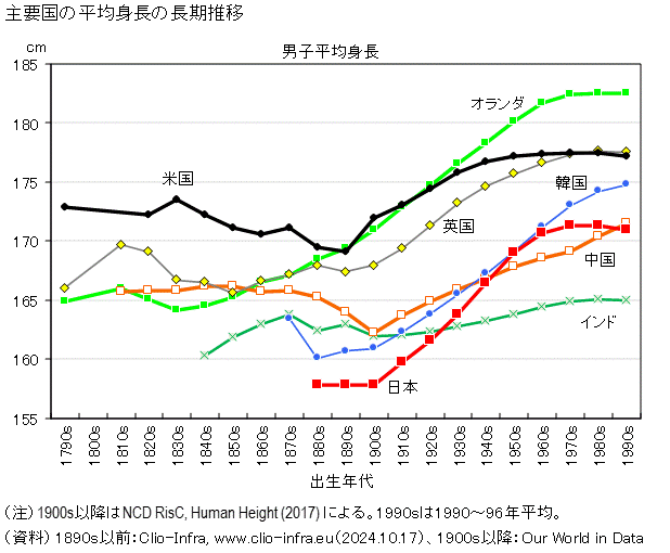 | … | 7626/03/08(日)16:44:44No.1408861433+>>80年がピークで成人の平均身長だからこっから下がるって事は1960年生まれが成人した頃から下がり初めるんだから貧困どうこうとかは全部的外れ |