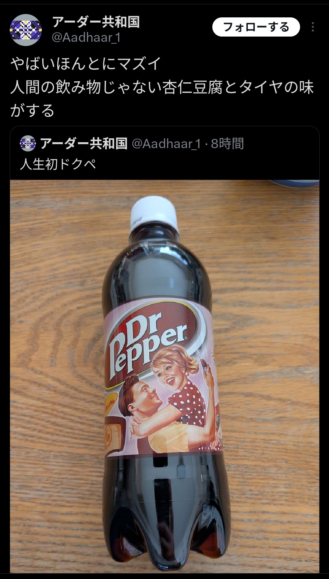 | … | 8626/03/08(日)20:27:07No.1408933658+やっぱ日本のドクペってアメリカとは味違うの? |