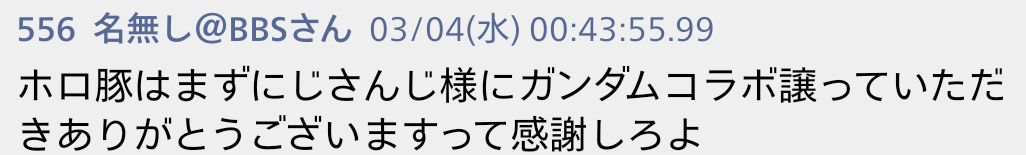 | … | 48426/03/08(日)21:18:24No.1408956549そうだねx4>ガンダム側からお願いしたら人情できっとにじも案件受けてくれるだろう |
