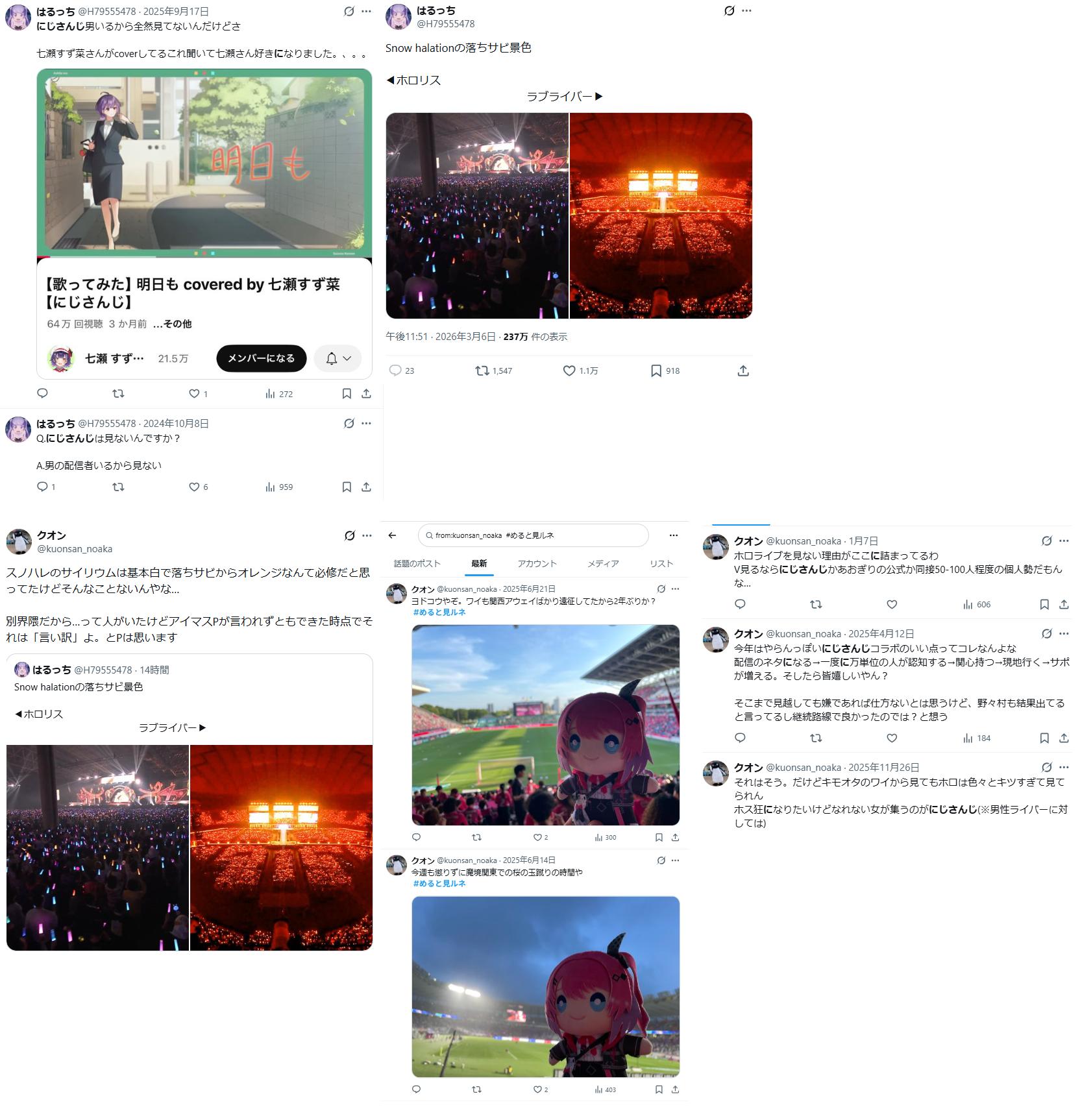 | … | 46726/03/08(日)21:17:32No.1408956193そうだねx2にじさんじファンを公言しつつホロアンチしてるアカウントが少なくとも300近く見つかってる上に |