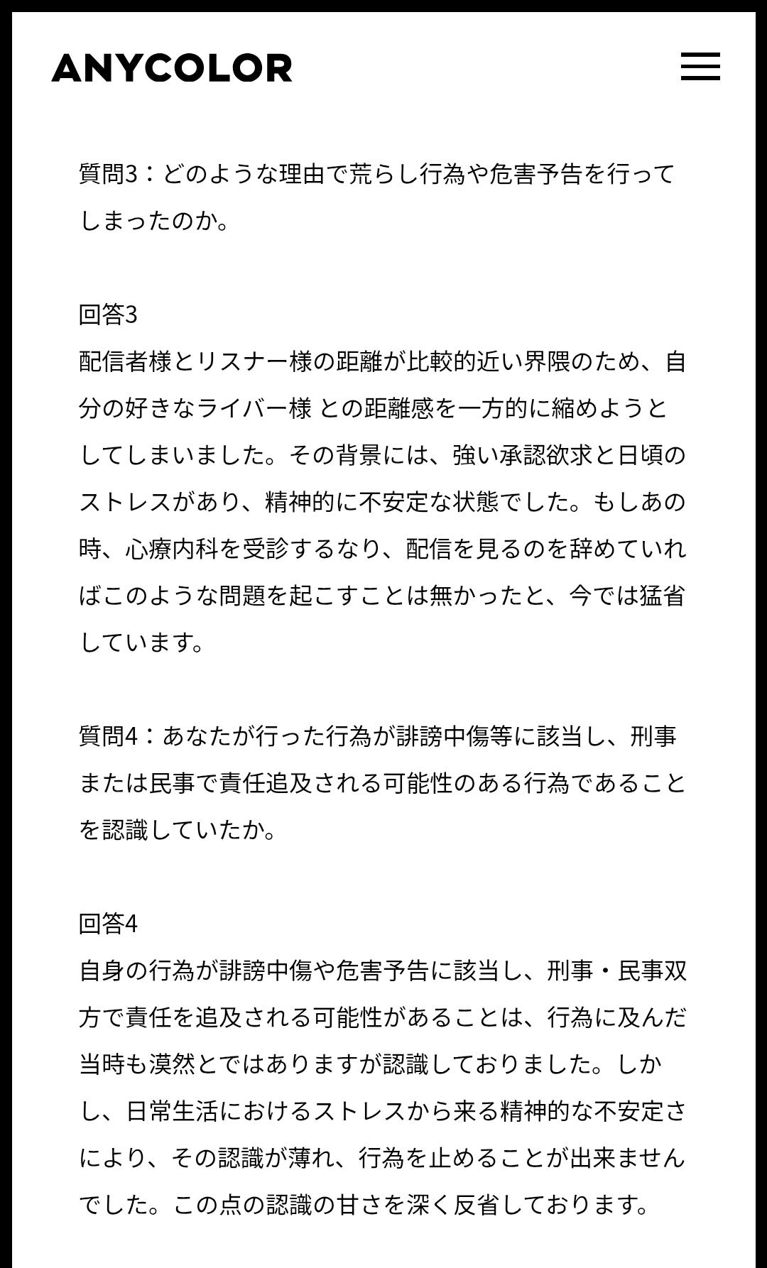 | … | 8726/03/08(日)21:57:21No.1408974455そうだねx9>ANYCOLOR誹謗中傷行為通報フォーム |