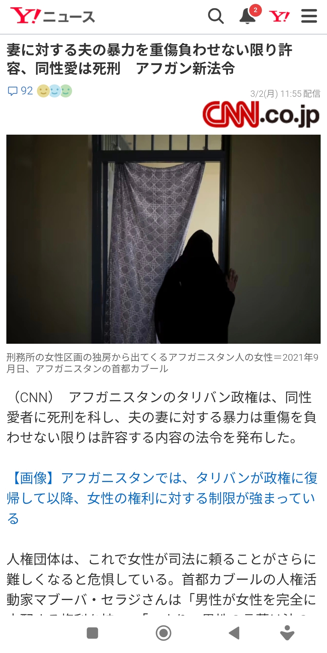 妻に対する夫の暴力を重傷負わせない限り許容、同性愛は死刑 アフガン新法令(CNN.co.jp) - Yahoo!ニュース https://share.google/vd5prxbFYSlmBDH4E