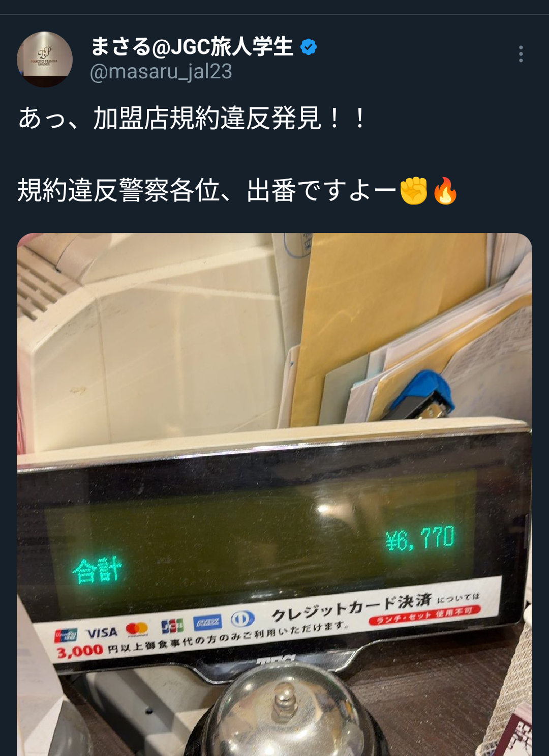 | … | 1726/03/09(月)02:19:38No.1409038335+むしろ違反してない店はクレカ代が丸々全ての商品の全ての支払い方法に上乗せされてるという |
