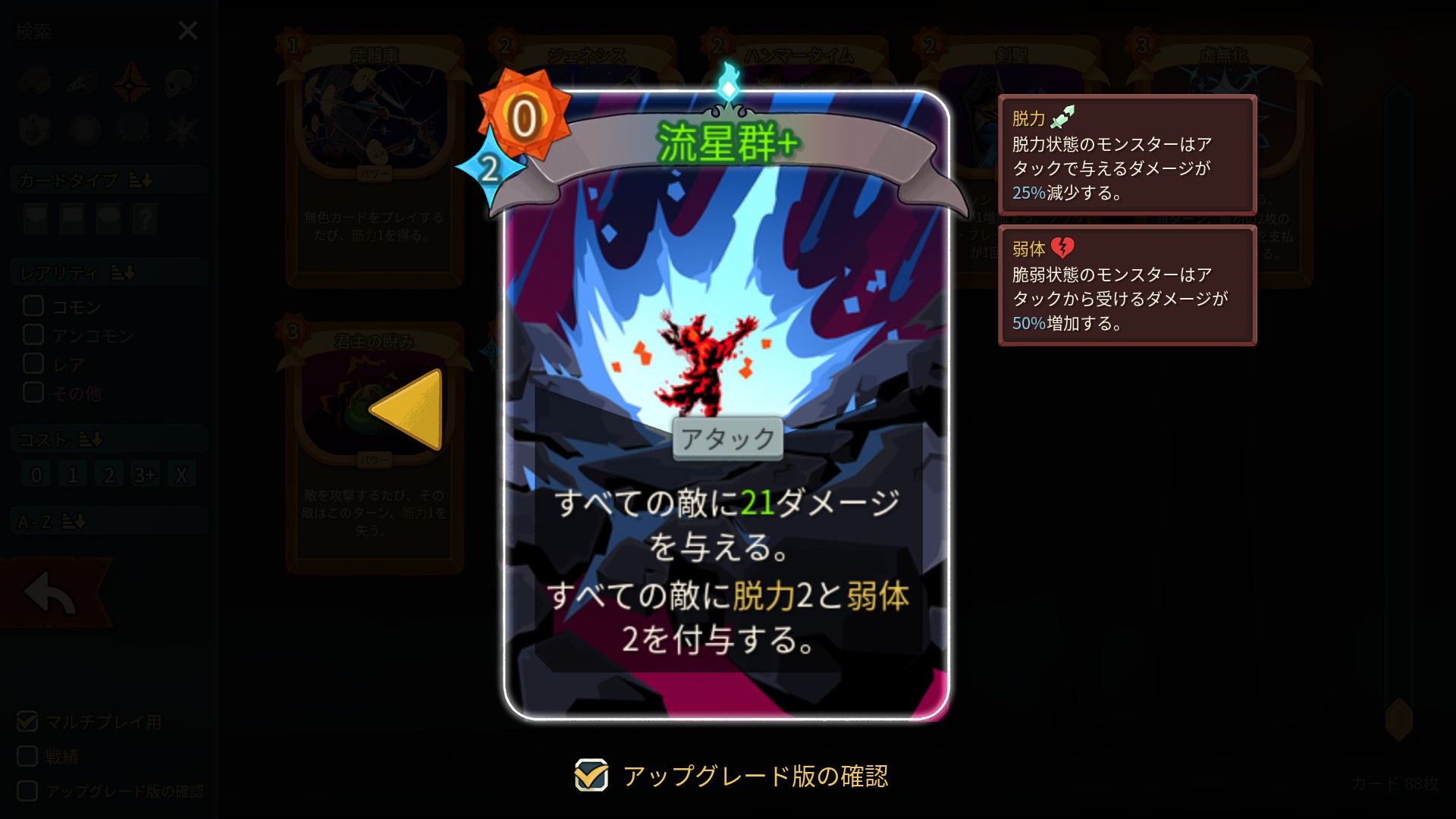 | … | 66426/03/09(月)06:22:46No.1409047976+触媒悪夢みたいにレア鍛造で少ない枠で火力出すためにあると思ってる コモン鍛造は序盤火力で仕方なく一枚取るのがあるかないか |