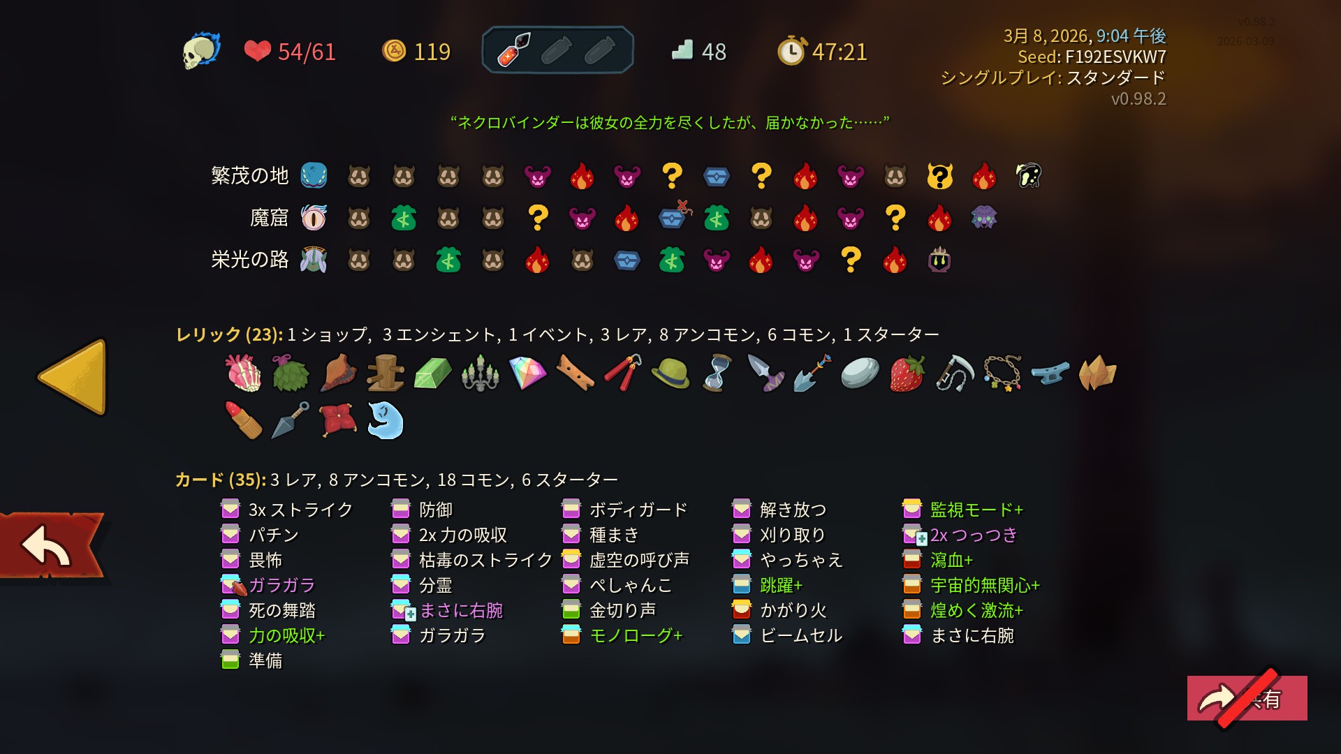 | … | 64326/03/09(月)05:38:48No.1409046811+とりあえずロボまで通したけど今回ボスレリでエナジー増える系以外でもめっちゃ強いのあって楽しいな… |