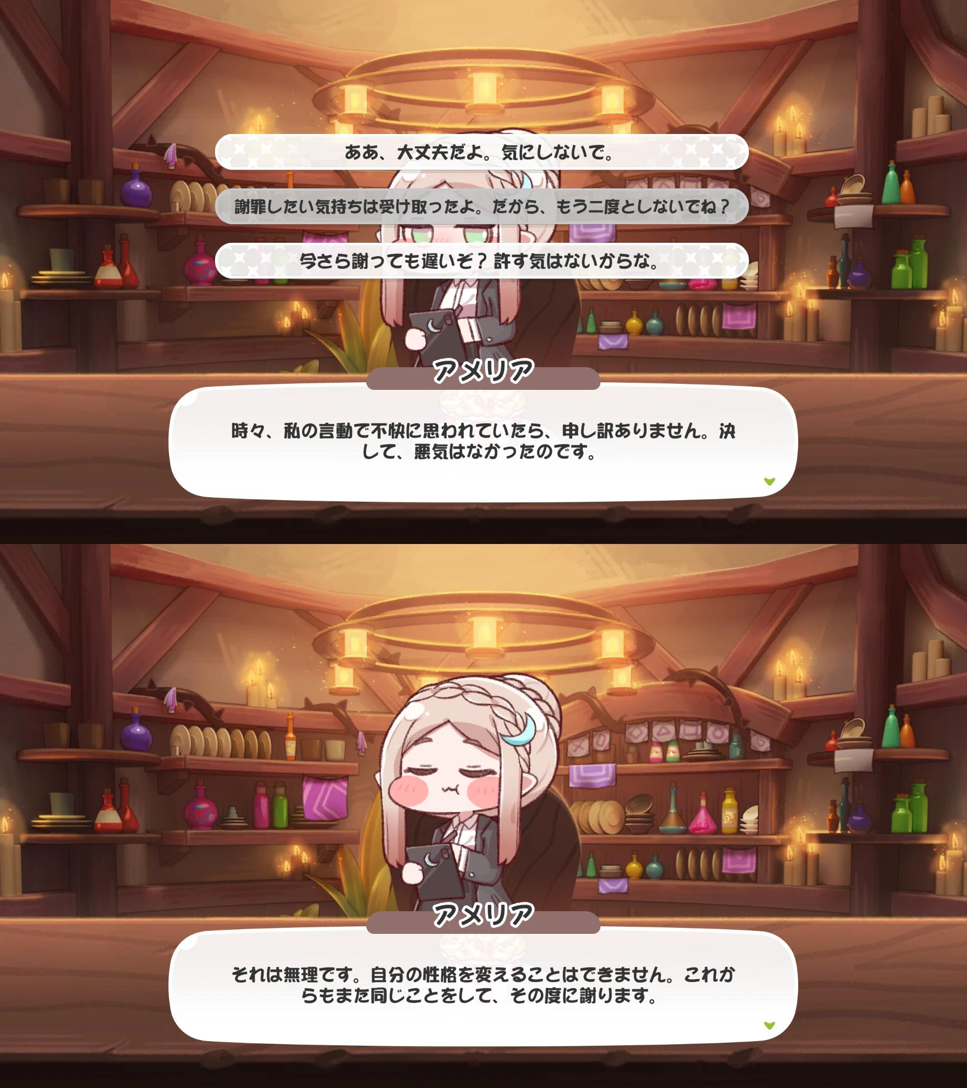 | … | 26926/03/09(月)12:34:11 ID:cpMckWHQNo.1409096322+アメリアは好感度21で明かされる奴がえ…そこまで気を許してくれてるにゃん…?ってビビるにゃん |
