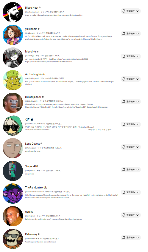 | … | 32826/03/09(月)12:22:57No.1409093171+人の登録チャンネル見るの結構面白いな |