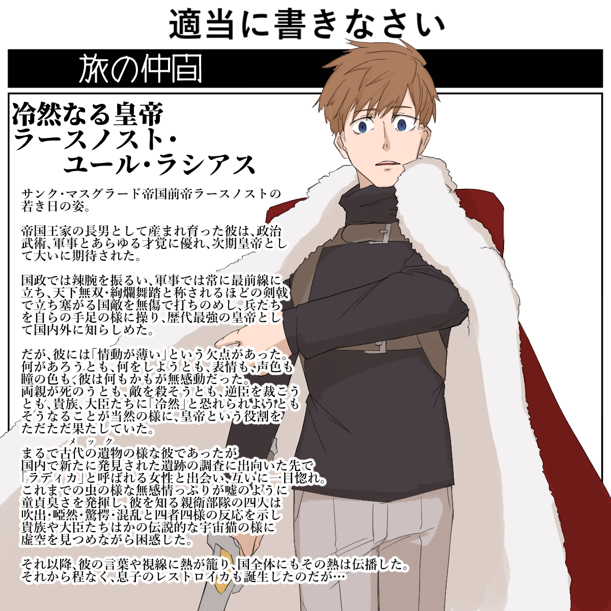 | … | 5126/03/09(月)23:53:33No.1409298626+ちなみに親衛隊4人の反応は若ノ帝描いてた時に思いついてたので |