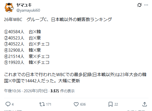 | … | 50026/03/09(月)23:26:45 ID:zbTRuMMENo.1409289026そうだねx1キューバはWBC本戦よりその後どれくらい亡命するか怖い |