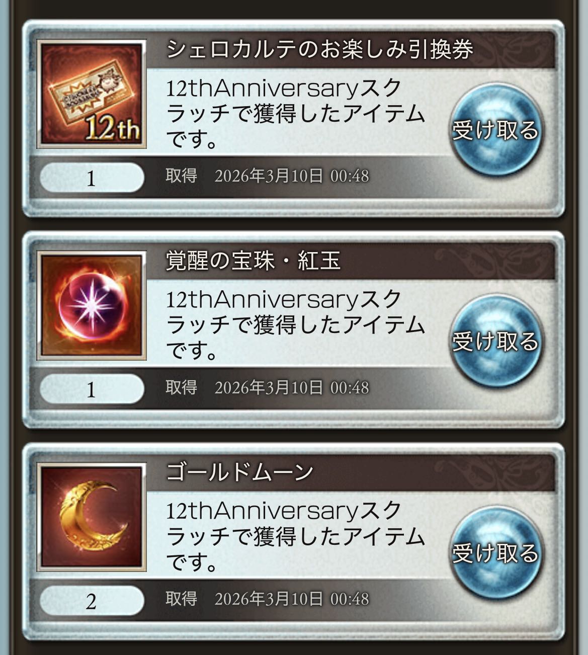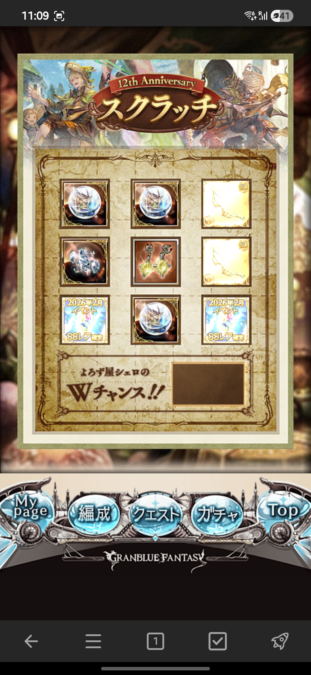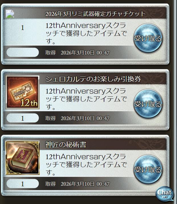 | … | 8526/03/10(火)00:04:24No.1409301629+スクラッチSSR確定チケが当たった |