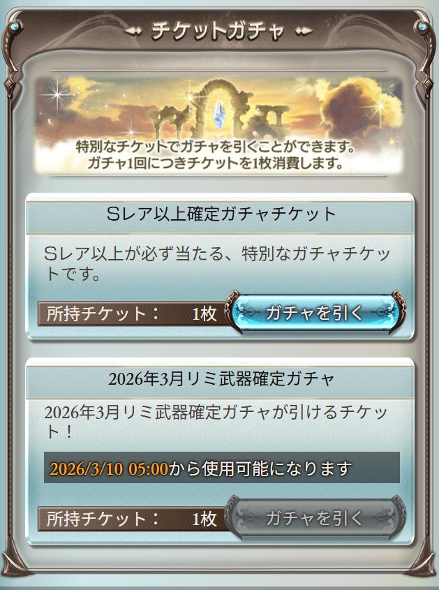 | … | 7126/03/10(火)00:02:19No.1409301090+リミ武器確定チケだけ画像表示されないんだよ |