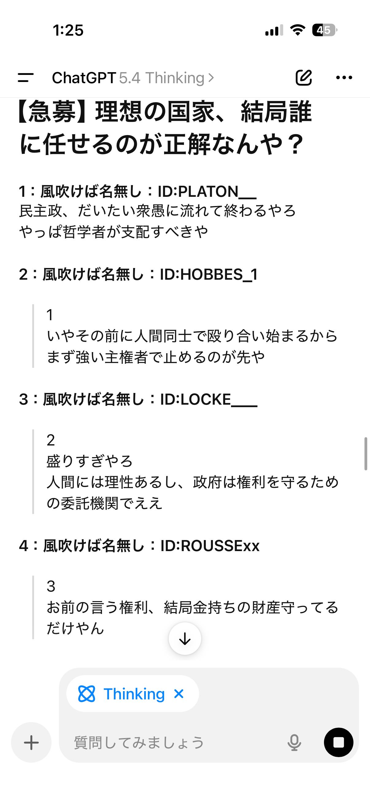| … | 426/03/10(火)01:33:59No.1409321292+この後マルクスがスレに乱入してルソーと結託した |