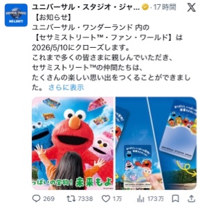 | … | 7626/03/10(火)09:20:08No.1409353082+>ユニバ、ジャンプ漫画や任天堂とコラボしてた方が稼げるから元々あったエルモのエリア潰せばもっとコラボできると気付いたんだよな |