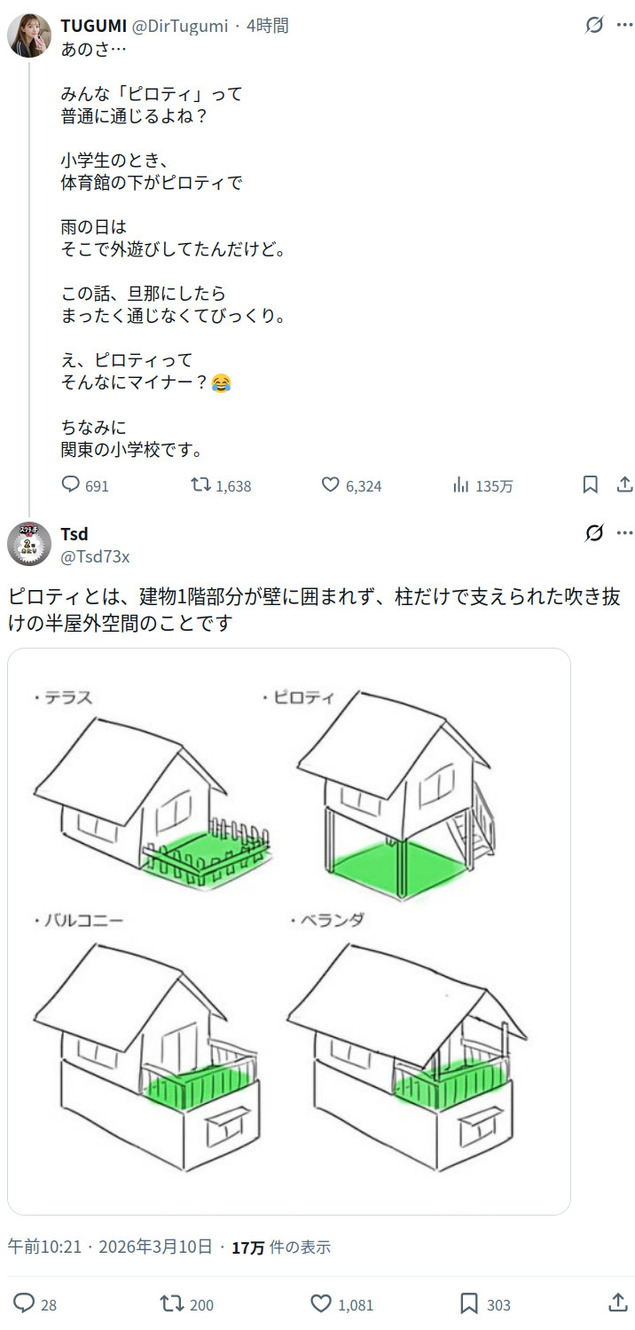 | … | 7026/03/10(火)14:53:14No.1409419566+ピロティは普通に使うしあちこちにある |
