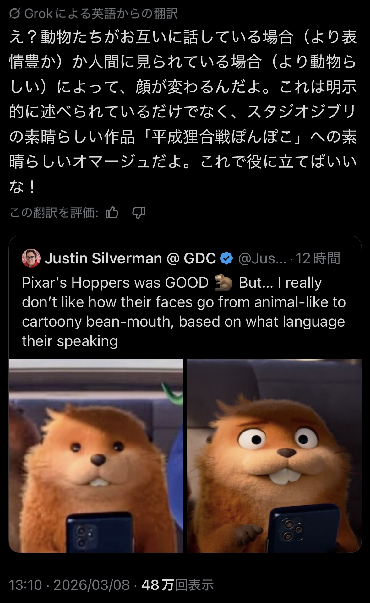 | … | 8426/03/10(火)19:03:27No.1409475921そうだねx4>なんなのピクサーはアジア人をケモになりたい種族だと思ってるの…? |