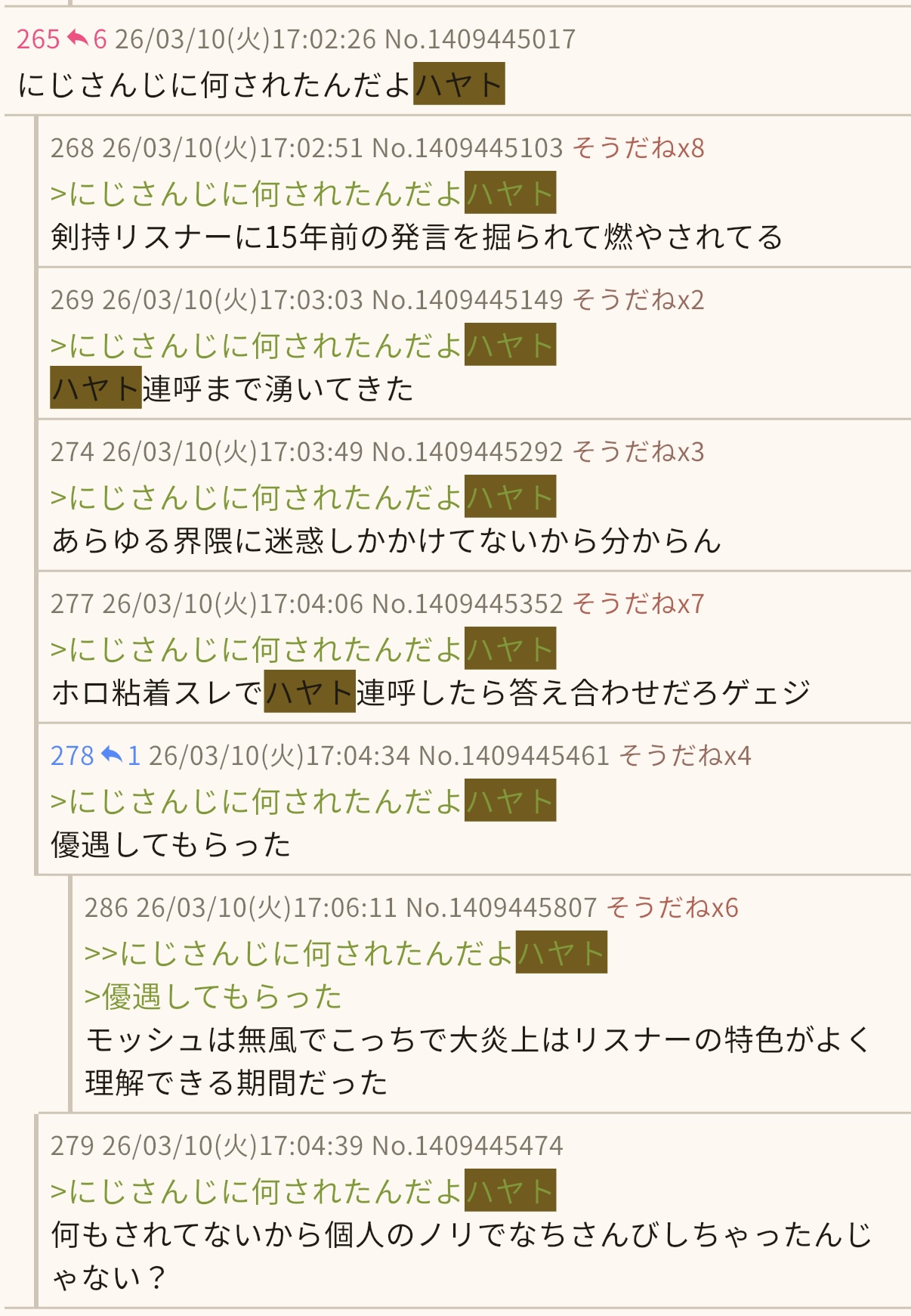 | … | 326/03/10(火)18:59:39No.1409474728+また搾乳ニビルでシコリに来たのかハヤト |