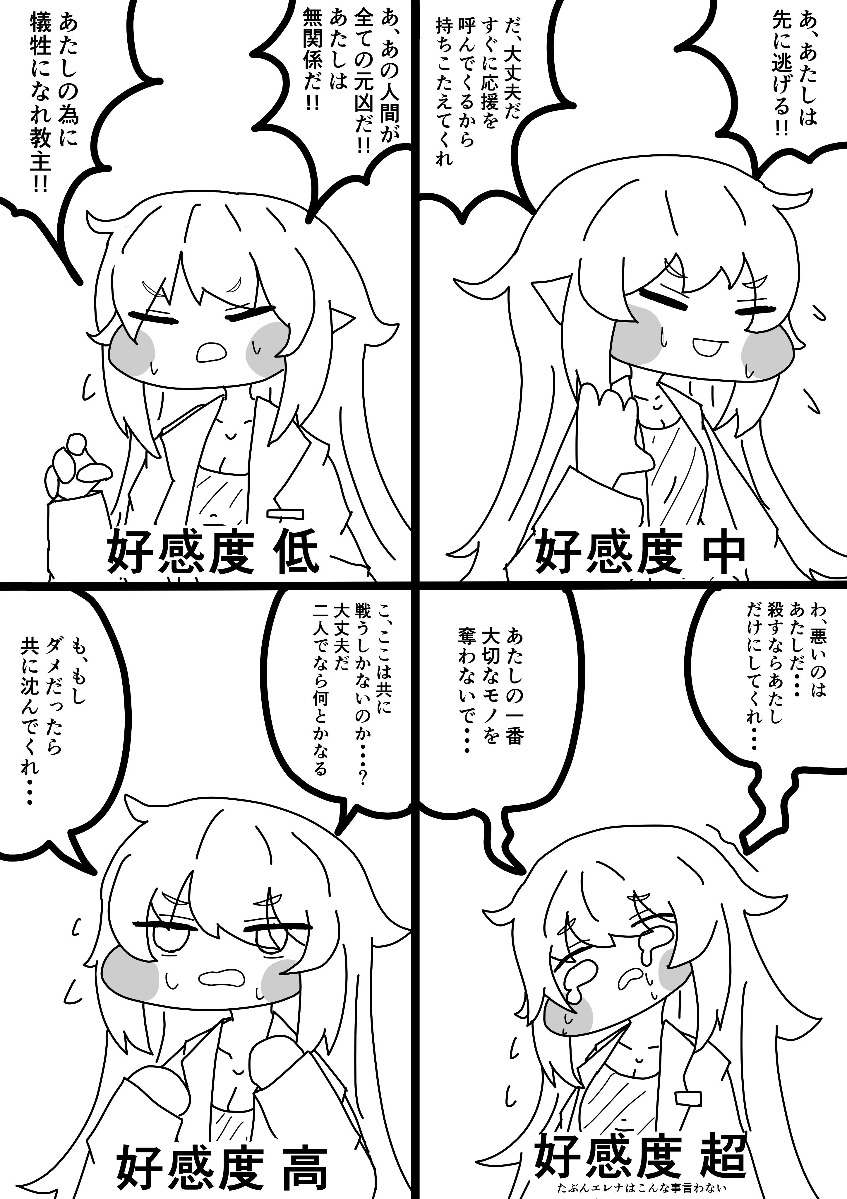 | … | 3626/03/10(火)19:48:44 ID:FE42roD2No.1409491253+エレナはよく酔ったふりしてお持ち帰りされようとするにゃん |