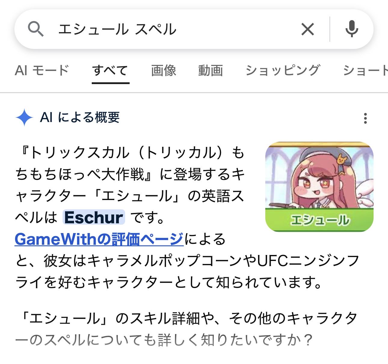 | … | 8326/03/10(火)19:58:13 ID:EvFWFH6UNo.1409494507そうだねx1>トリッカルのスレ落ちた直後に検索でトリッカルって押して結果に何も出てこなかったとき |