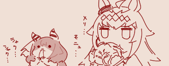 | … | 16826/03/10(火)22:17:20No.1409549436そうだねx2>ペチョの始まりはこれらしいが本当なのだろうか >fu6399877.png 始まりではない もともとペチョ…は舌出しっぱなしのミラ公が顔近づけてくると舌が当たるよねって話だったと思う あとフスフス…プシッもあった |