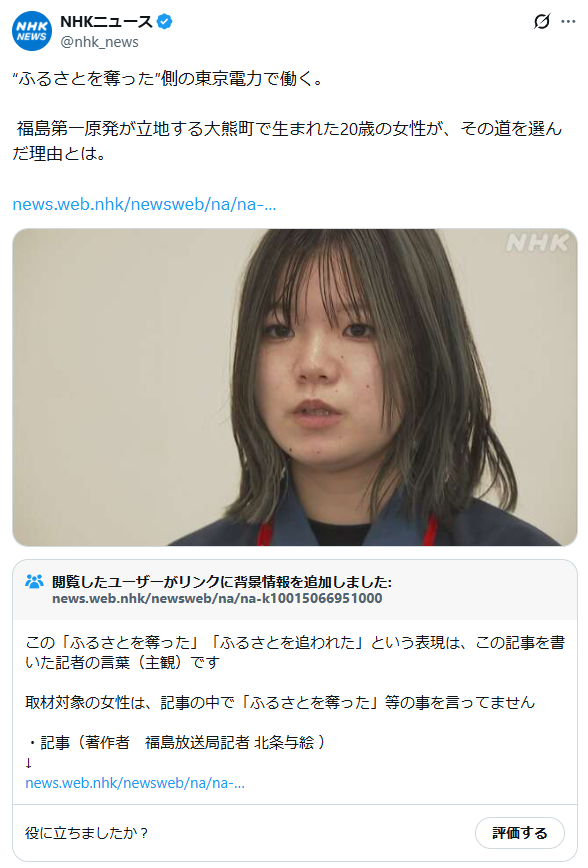 | … | 826/03/10(火)22:38:25No.1409556531そうだねx33>じゃあ東京電力は福岡の人々からふるさと奪ったって認識してないんですか! |