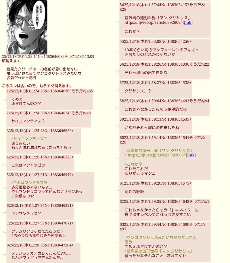 | … | 226/03/11(水)01:36:53No.1409600368+再販しないかなマンクリトリス… |