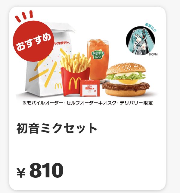 | … | 626/03/11(水)08:00:17No.1409625636+>※フードとドリンクのみのセットです。初音ミクのグッズは付属しません。 |