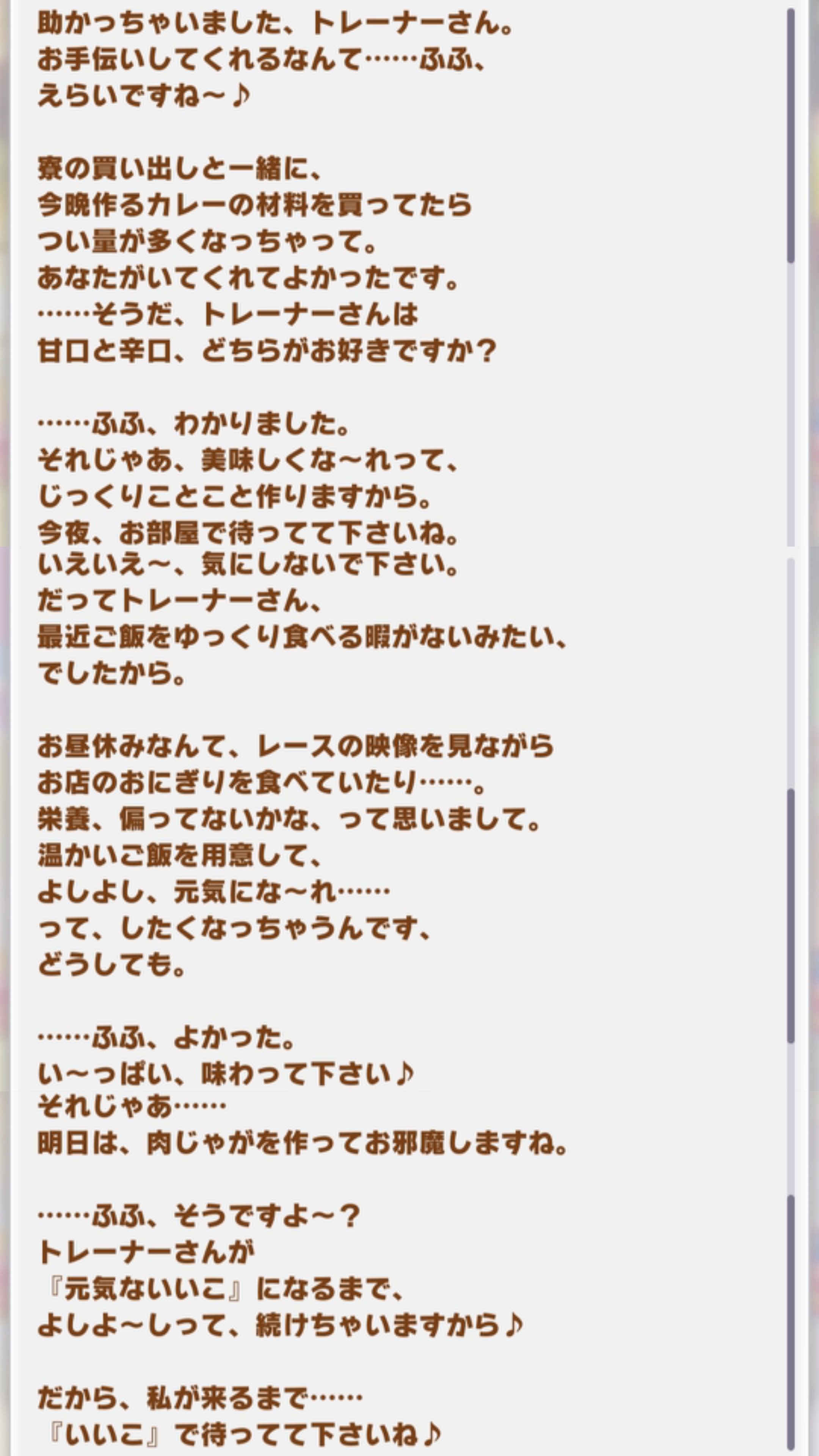 | … | 41626/03/11(水)13:10:54 ID:M/YDHnTgNo.1409689305+ココイチ辺りでコラボしてウマ娘カレー対決やってほしいです |