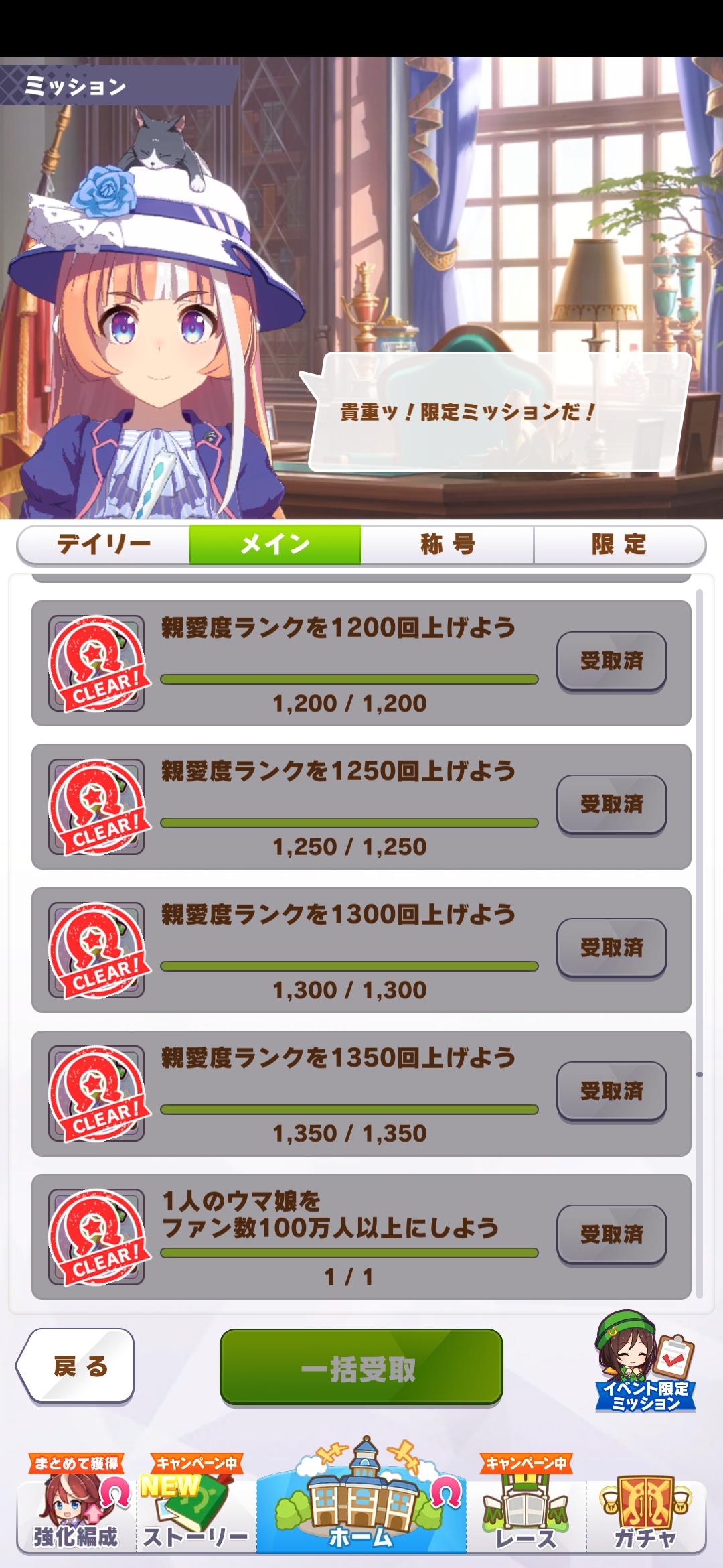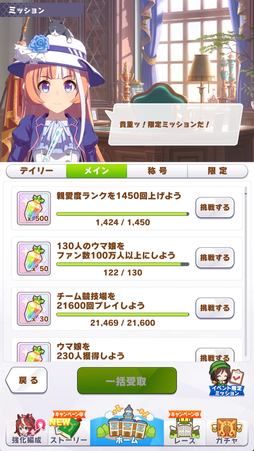 | … | 6126/03/11(水)12:01:26 ID:.5s3bma2No.1409666902+育成中だったので最速でチームランクUGのミッションをクリアしました |