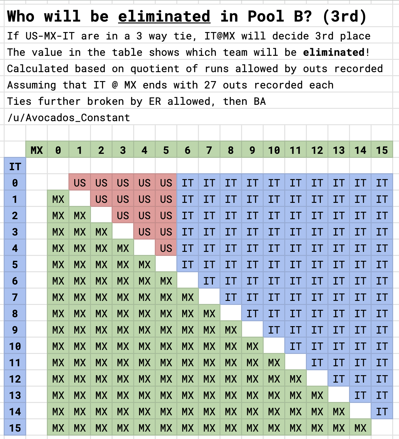| … | 6926/03/11(水)13:19:21 ID:Fbf9QgKUNo.1409691598そうだねx5>9回決着として🇮🇹が4失点以内(5失点なら自責1以内)で🇲🇽が勝てば🇺🇸敗退 |