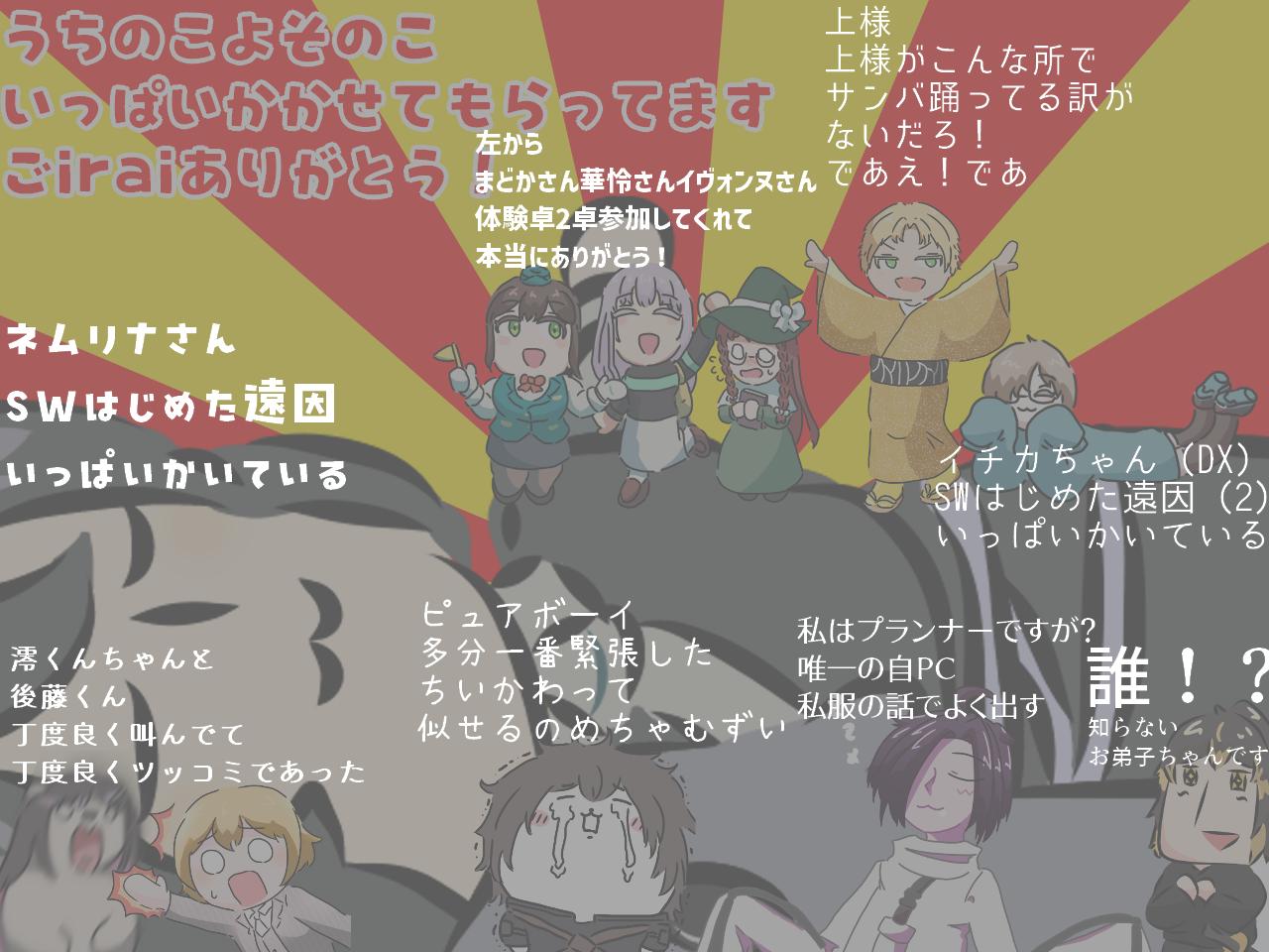 | … | 7326/03/11(水)18:26:17No.1409763673そうだねx1もっとTRPGしたいのに仕事がそれを許さない |
