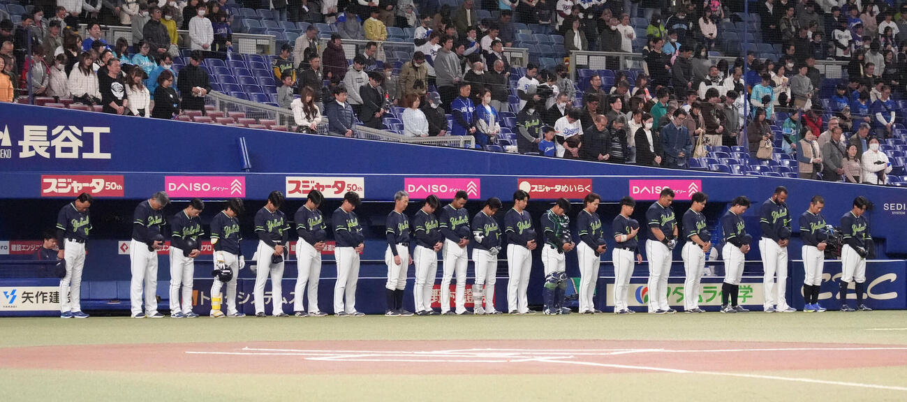 | … | 39326/03/11(水)18:46:57 ID:64OOw98oNo.1409770177そうだねx2>中日対ヤクルト 試合前、東日本大震災の犠牲になられた方々に対し哀悼の意を表し黙とうするヤクルトナイン(撮影・森本幸一) |