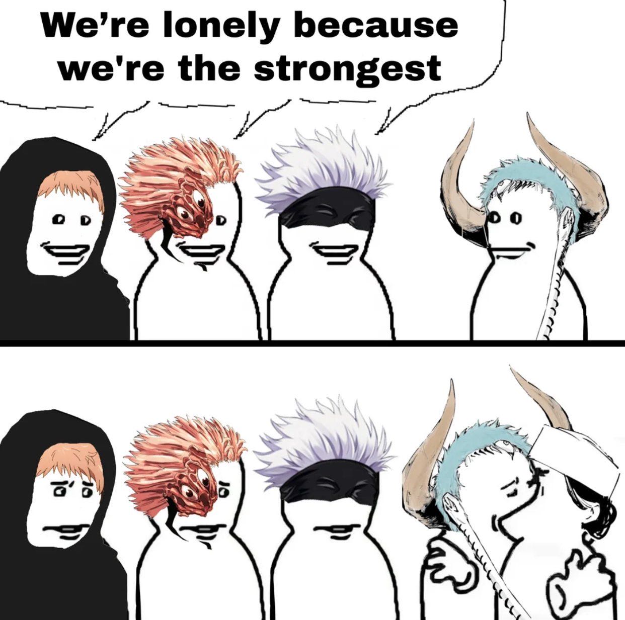 | … | 3026/03/11(水)20:13:04No.1409801428そうだねx3一括りにしてるけど宿儺は生まれた時から化け物扱いされてのが元っぽくて五条は強者故の孤独で虎杖は老いないのに友人が死ぬのが元だし同じじゃないだろ |