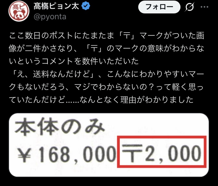 | … | 2226/03/11(水)18:58:45No.1409774079そうだねx20知らなくても多少推測は付くけど〒で表記するにしても¥付けないから悪い |