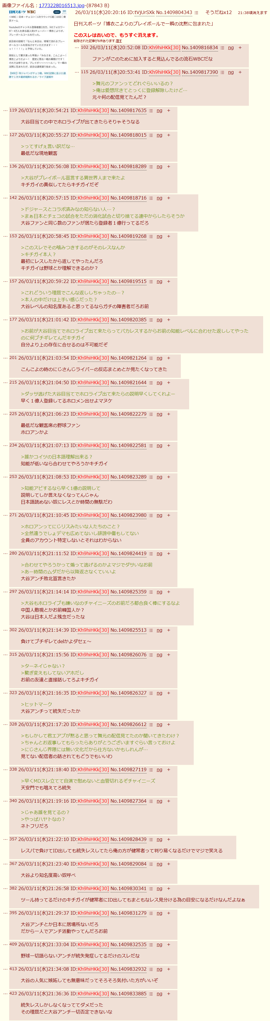 | … | 2026/03/11(水)22:15:42No.1409849145+>本人きた? |