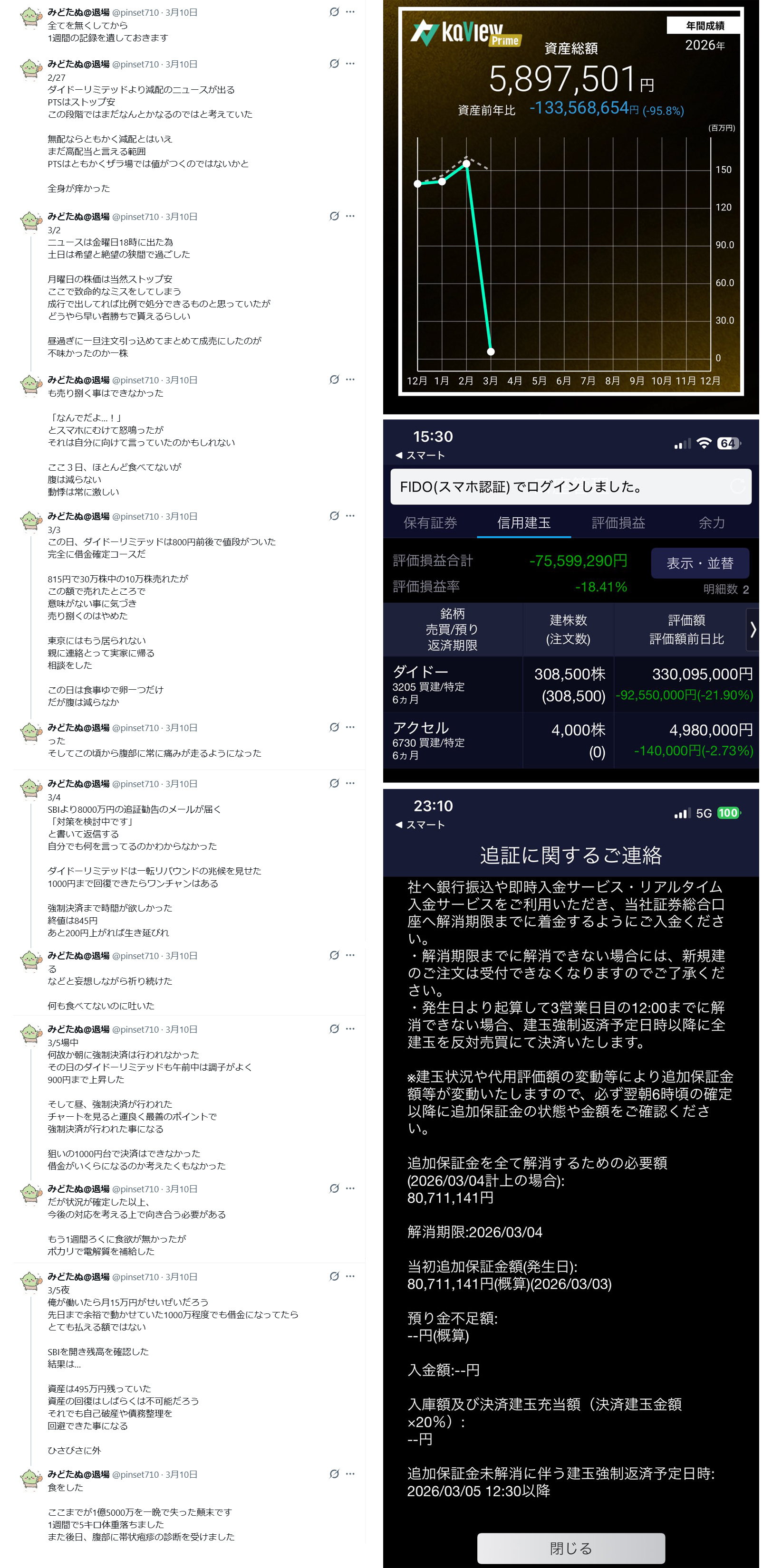 | … | 2026/03/11(水)22:15:15No.1409848965+追証って食らったらマイナス何百万とか確定ってわけじゃないんだ |