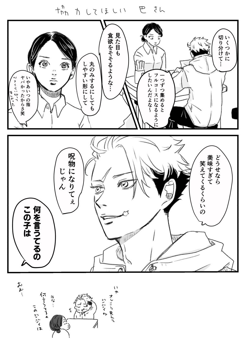 | … | 38426/03/12(木)01:05:35No.1409899855+俺のためって色々やってくれるのは良いけどやりすぎないか心配なんだよねって受肉人に虎杖教の愚痴言う虎杖か… |