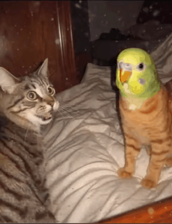 猫とインコが遊んでいる動画、と注文したのに意味不明な動画が生成される