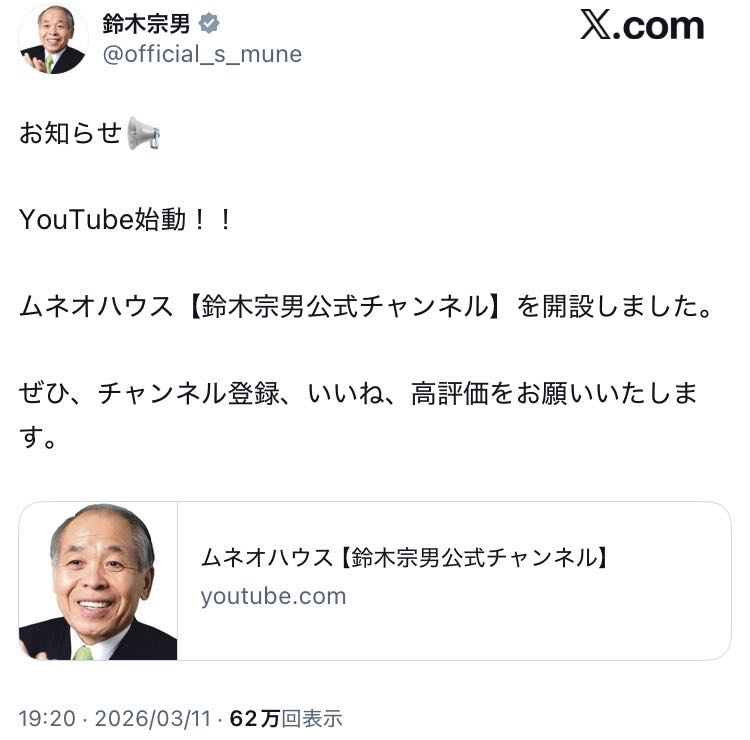 | … | 2526/03/12(木)09:12:15No.1409935245+娘さんは議員やってて広報担当らしいけど大丈夫なんかね |