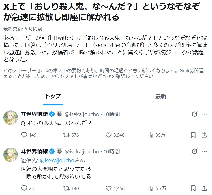| … | 426/03/12(木)10:13:08No.1409945849+もう尻と殺人に何かしらの相関関係が有ると思わざるを得ない |