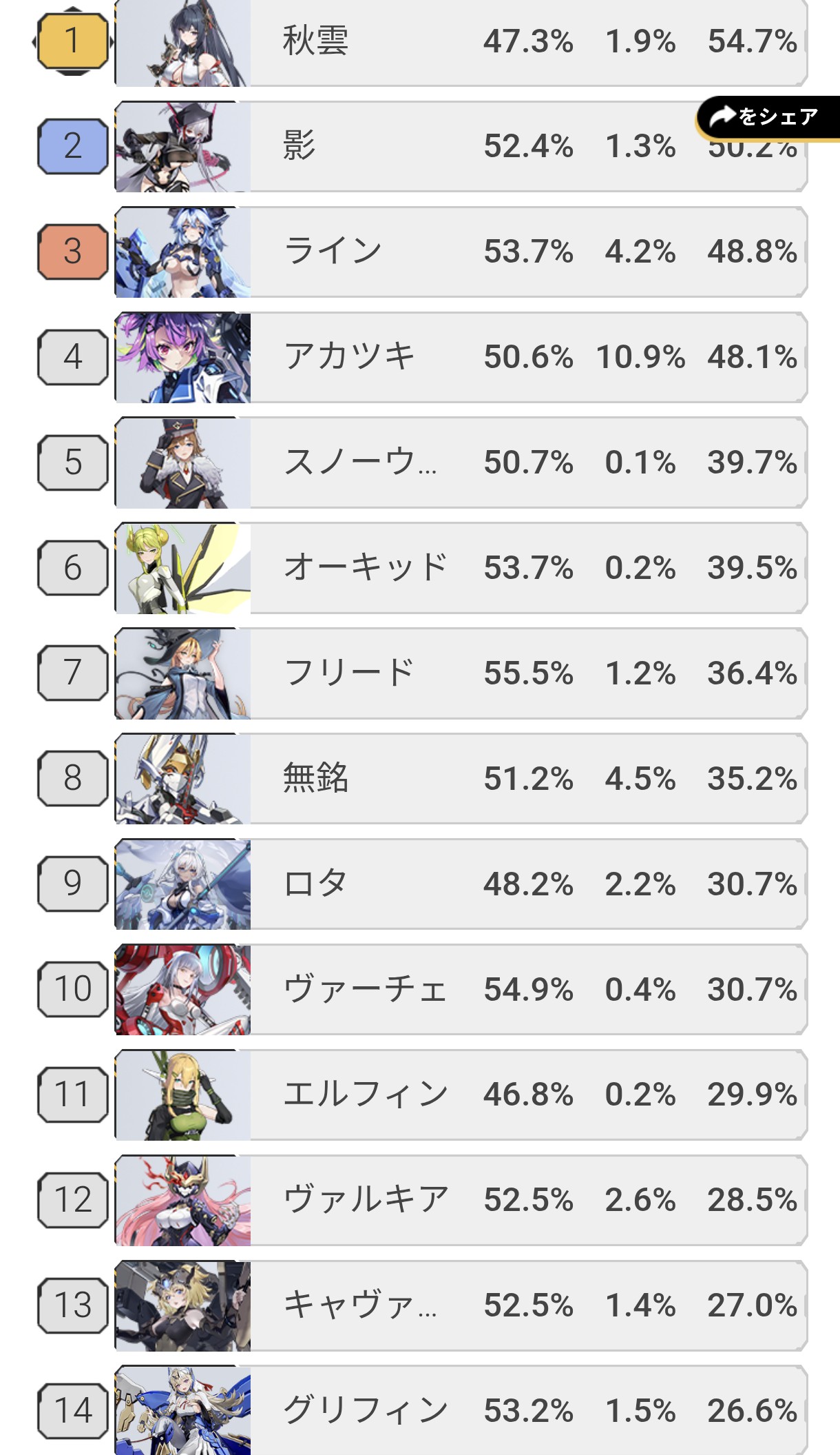 | … | 526/03/12(木)11:55:14No.1409968204+実際この30上位4キャラを軸に環境が構築されてると思うんち |