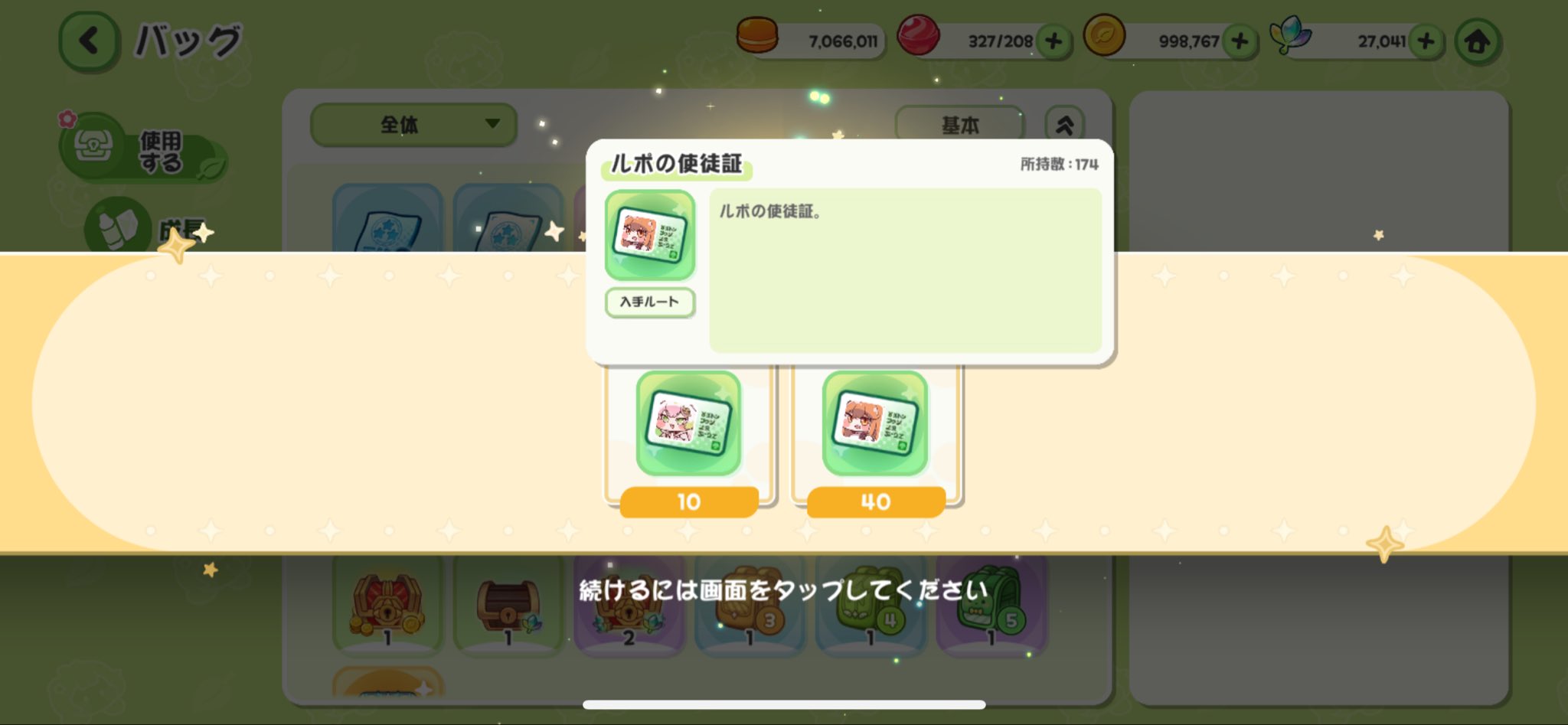 | … | 46326/03/12(木)20:12:20 ID:lrNYFCCYNo.1410108623+やべーぞ!と思ったのでとりあえず鞄引いたにゃん 20連で出たからこの辺にしといてやるにゃん |