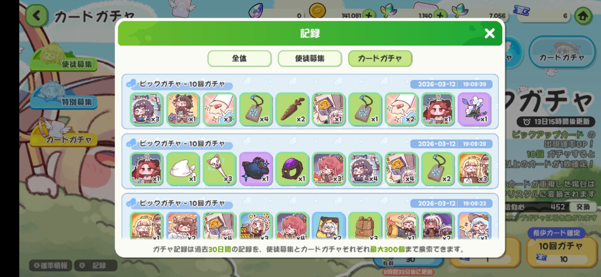 | … | 926/03/12(木)18:47:05 ID:3v6ITpF6No.1410081416+前回は属性チケット1枚目でナイアが来てあっけなかったにゃん |
