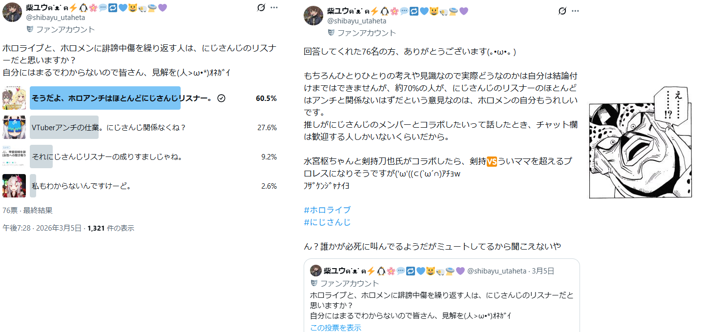 | … | 526/03/12(木)20:35:30No.1410116957+6割はにじリスはホロアンチと言ってるようだが… |