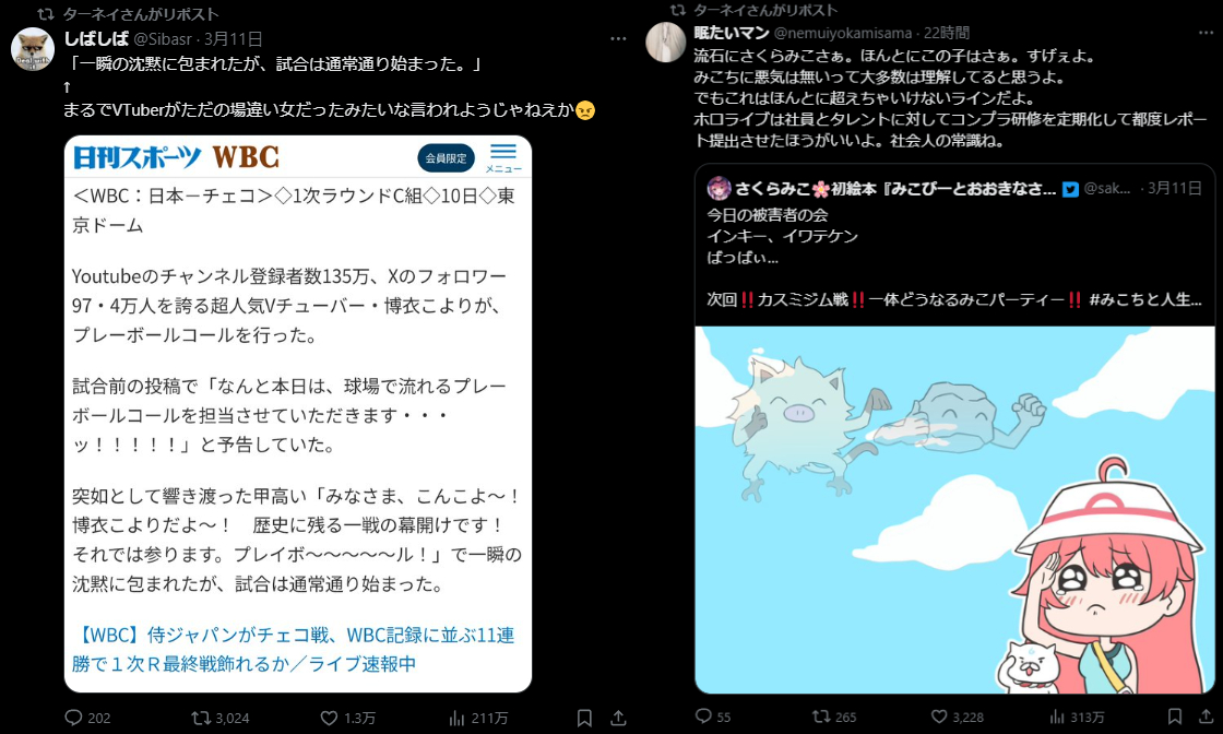 ホロが画面内に映ると確定→野球配信今日はやめますになったの本当に凄まじいな…ってなった