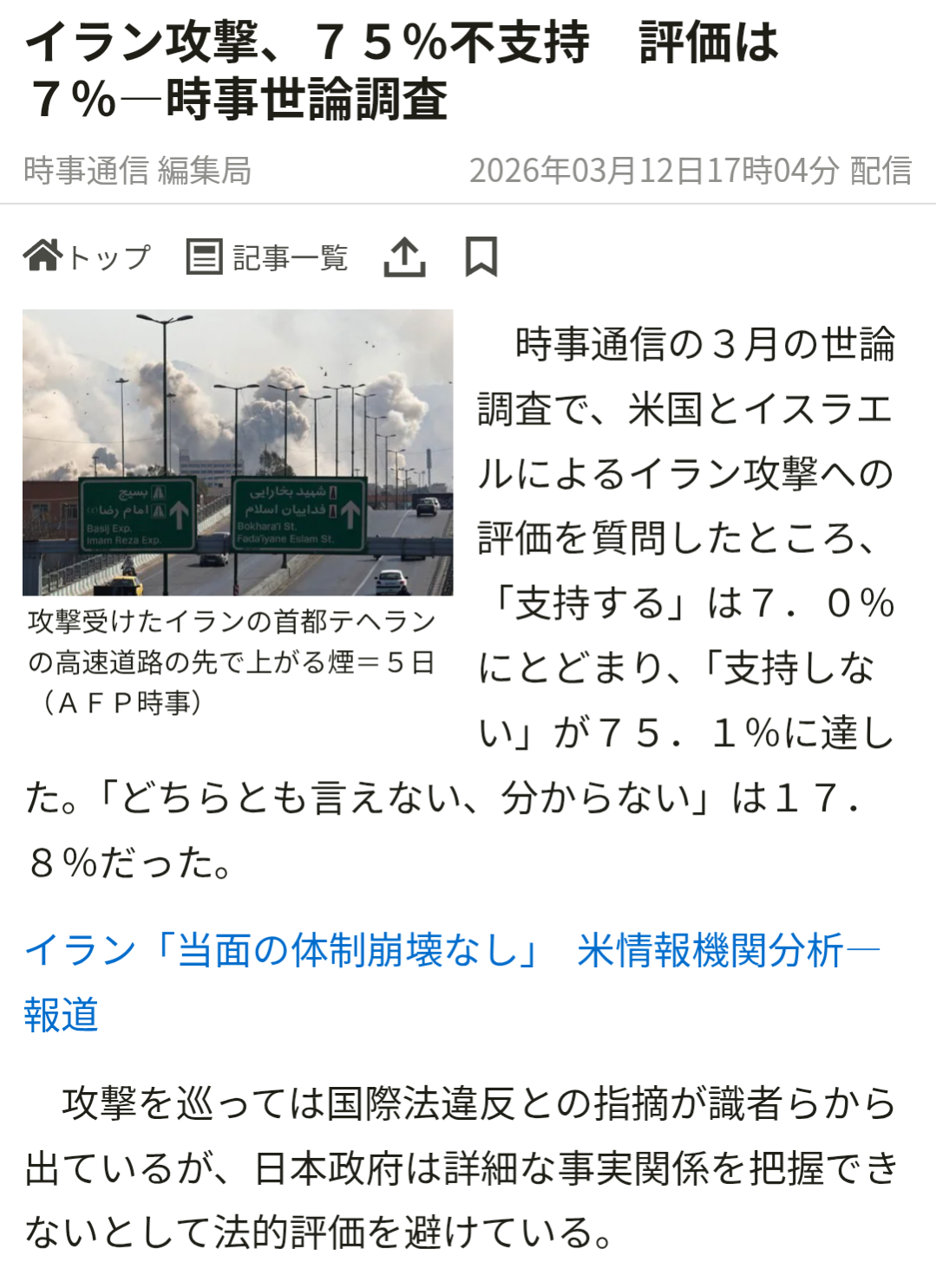| … | 12126/03/12(木)22:10:30No.1410150331+>日本国民の7割が米国・イスラエルによるイラン攻撃を支持せず |