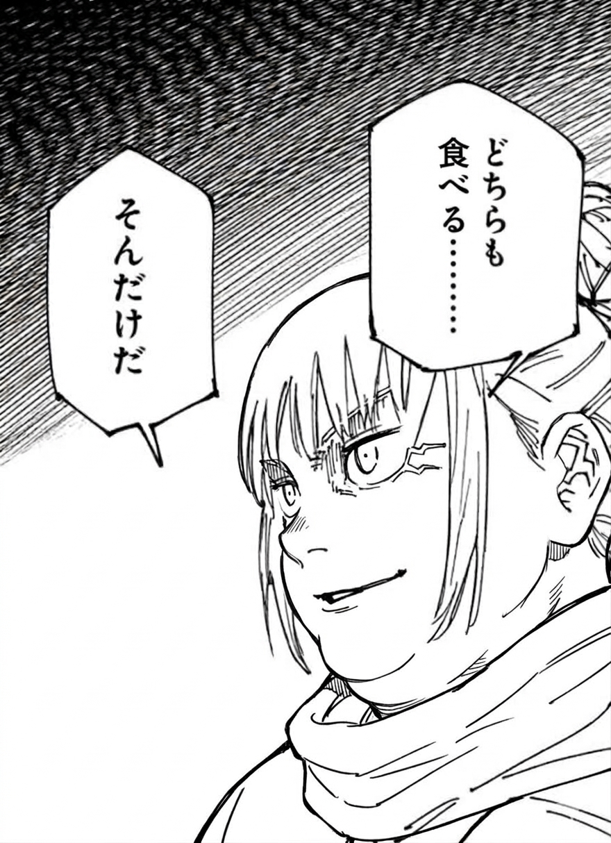 | … | 526/03/12(木)23:54:03No.1410180790+受肉組にいてもいいよね現代の飯美味え!!って激太りしてる術師 |